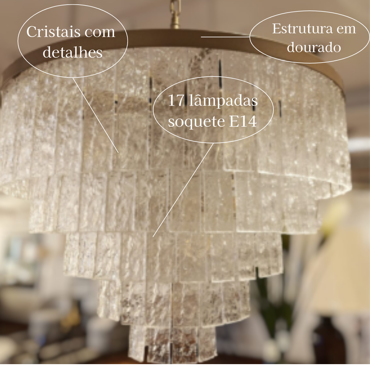 Ilumine com estilo e transforme seu ambiente. Adquira o Lustre Vernazza e faça do seu espaço um verdadeiro palco de elegância.