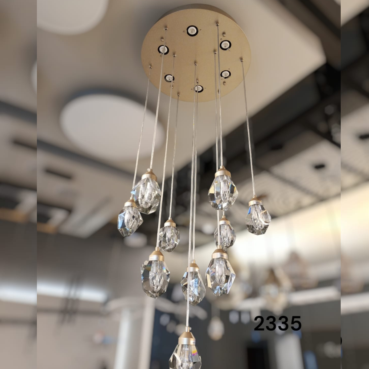 • Cristais Lapidados: Cristais de alta qualidade criam reflexos impressionantes, proporcionando uma iluminação suave e luxuosa.