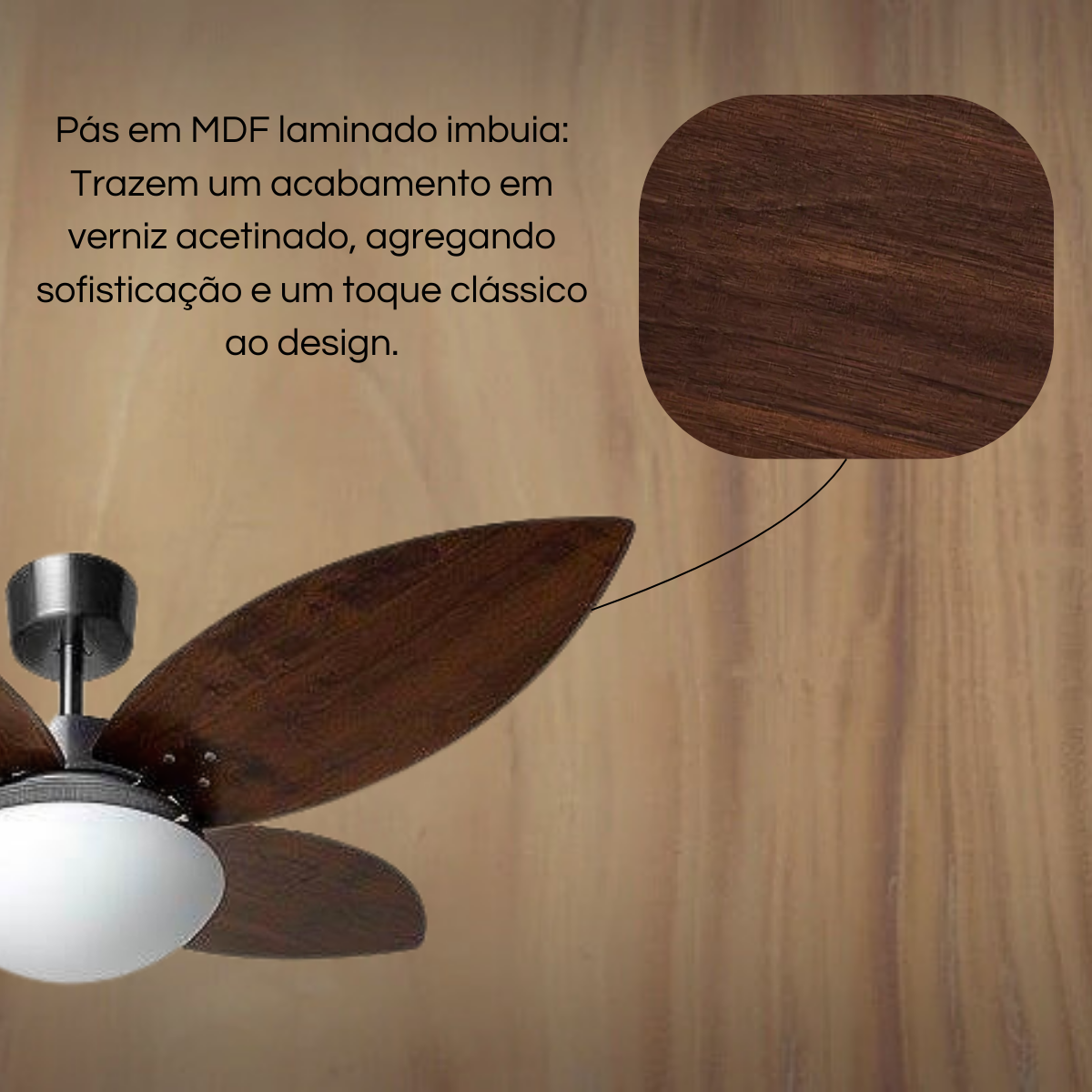 Adicione charme e funcionalidade ao seu ambiente com o Ventilador de Teto Capadócia Imbuia. Com um design refinado e estilo retrô, este ventilador combina materiais de alta qualidade com acabamentos sofisticados, oferecendo eficiência e durabilidade.